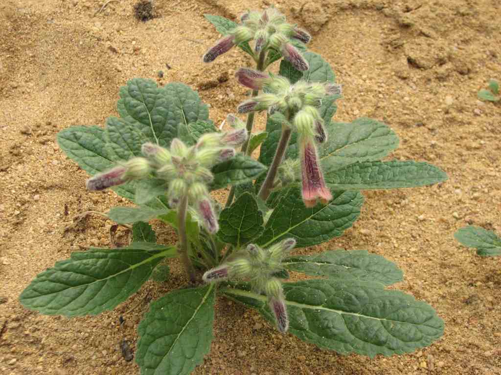 黄芩灰霉病可危害黄芩嫩叶、嫩茎、花和嫩荚,形成近圆形或不规则形、褐色或黑褐色病斑,也可危害茎基部,病斑环茎一周,病部有灰色霉层,其上的茎叶随即枯死。