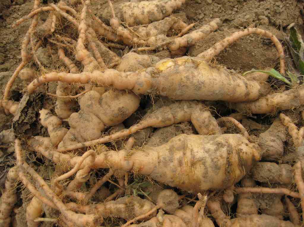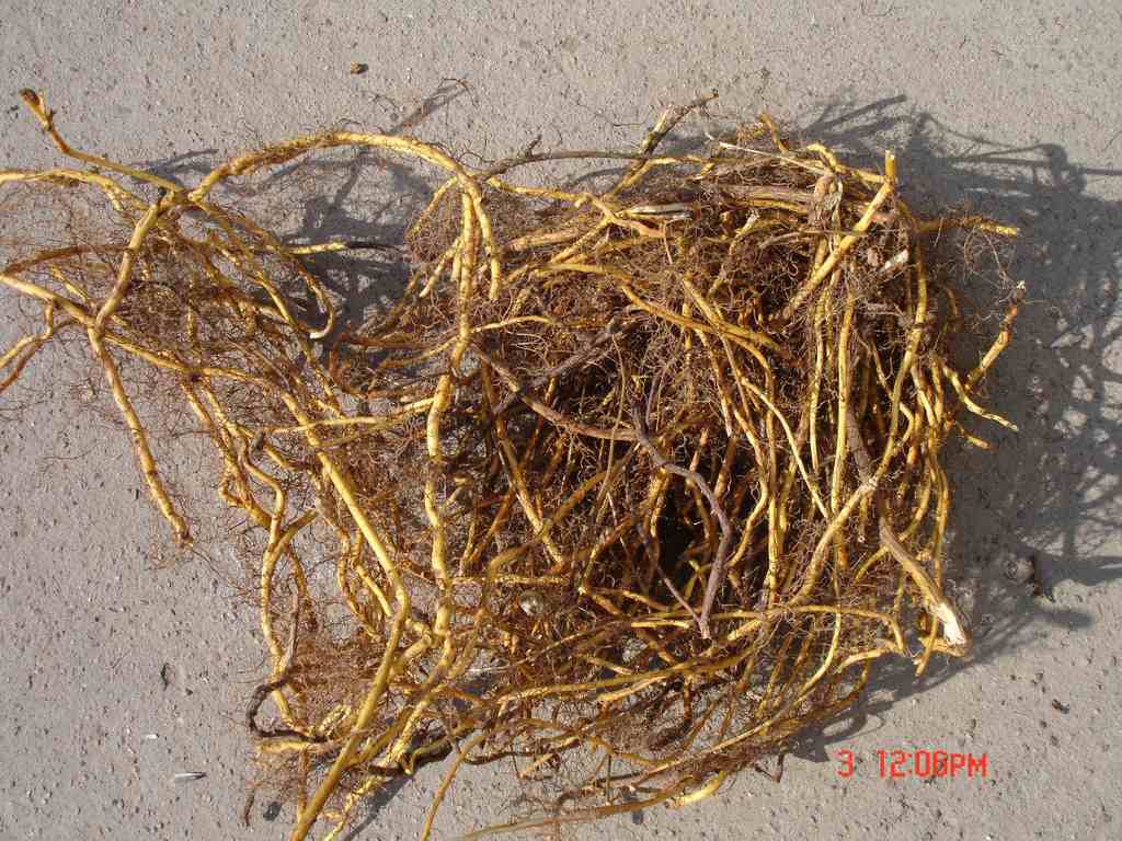 在染病植物的根部,形成大小不等的根结,根结上有许多小根分枝呈球状,根系变密,呈丛簇缠结在一起,在生长季为害根部十分严重。