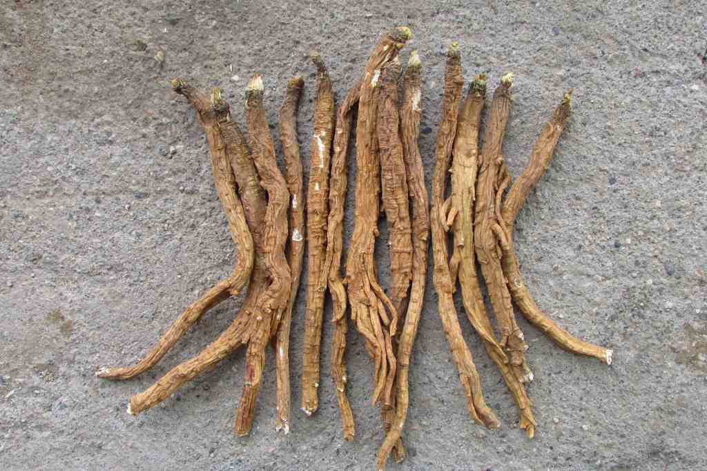 (1)晒干 将主根上残留叶柄剪去,摘去侧根另行干燥;晒1~2 天,再将主根依大、中、小三等级分别曝晒,反复多次,直至晒干。晒时忌雨淋。